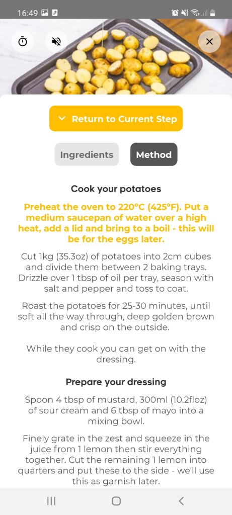 After the ingredients you go straight into the recipes, which I personally wish it wouldn’t do. I learned a long time ago, on my first disaster in the kitchen involving burned-something and uncooked lamb, that you should always read a recipe through first. On the Meal Packs app a voice starts telling you the steps before you manage to mute it and click on the full-recipe. However, I do appreciate that they give you the option to look at the full recipe, which is a positive.
