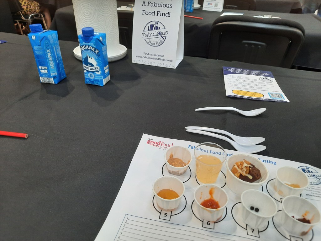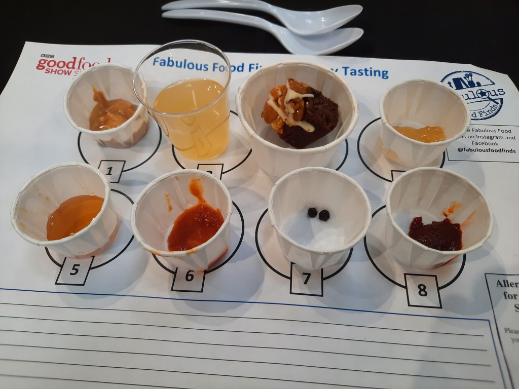 The last thing I want to review is an add-on that we paid additional money to do, and this was the ‘Mystery Tasting’ event in the GoodFood Show Tasting Theatre. It was run by ‘FabulousFoodFinds’, a lovely lady who helped guide us through the ‘mysteries’ we were tasting. Essentially, we had a sheet of paper in front of us with 8 little paper cups (okay, one of them was a little plastic drinking cup) on top of it. Each cup had a mystery food or drink item inside which was made and was being sold by a vender in the Show and for half-an-hour we would smell and taste an item, guess what it was and then be told what it was. Some I loved, some I hated, some nearly killed me (joking, I just drank all of the supplied water carton to get rid of the pain—plus some cold chocolate milk off a stall 5 minutes later). Two of the venders actually stopped by as well to talk to us about their product: One explaining about the farm his peppercorns were grown on and how they were cured and one coming to explain the heritage that her food products come from (Philippines, a food I’m intrigued by and also was the one that did the aforementioned killing—although I believe the product we tasted had more of a Chinese base).