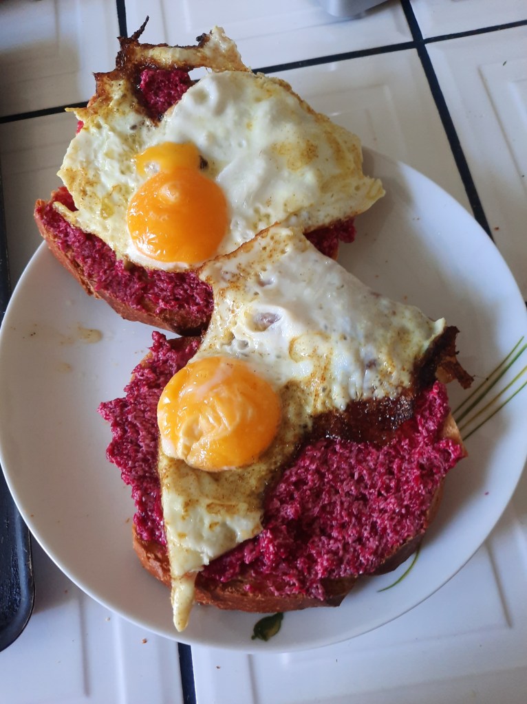 - Toast with Anchovy and Beetroot Butter: This is a recipe I feel so mixed about. On one hand, it feels unfinished: it was a bit too fatty, needed more salt and acidity in the butter and was very fishy tasting (fine for me, I imagine horrible for people who hate fish). On the other hand, I think it could be great. I love the concept and I do think it was on it’s way to being a great recipe. I’m still playing with it in my own cooking to improve it and it inspired a lot of other recipes I’m working on. It makes a large quantity, which you definitely don’t need for the amount you should put on your toast (I would wrap in clingfilm in a sausage shape, freeze and use whenever you want to use it again—she does suggest to use leftovers in pasta etc. so she’s aware it makes too much). The eggs fried in cumin seeds really aren’t necessary. You can’t taste the cumin over the flavour of the butter and egg. Still, although I wouldn’t make THIS recipe again, I would make a recipe like it again.