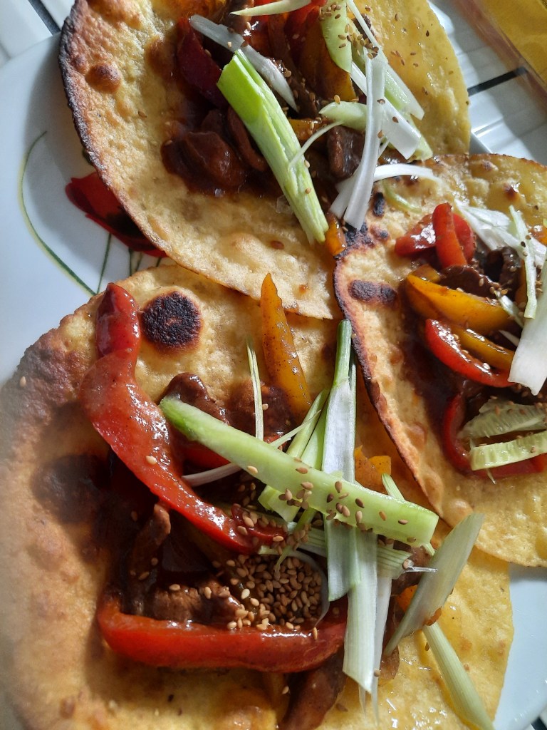 - Duck Tostadas: DO NOT use Plum Sauce instead of Hoisin Sauce. It may be part of the sweet section but it shouldn’t be that sweet, believe me. Unfortunately we couldn’t get hoisin sauce and used the next best thing we could get. You might ask, why did you make this recipe if you couldn’t get a hold of a key ingredient/flavour? Because… we wanted to eat duck. That’s it. We rarely get to eat it as my Dad hates it and this gave us a good excuse to eat it (making something different for my Dad). It’s a quick recipe to do. The duck turned out quite dry. The peppers didn’t feel like they belonged in there as they added a weird bitterness to the filling. The sauce (including the-usually-okay-but-not-this-time plum sauce) could’ve done with some soy sauce and/or some salt. We both agreed that we weren’t sure, even with hoisin sauce, that it wouldn’t need to be a bit more savoury of a sauce. Either way this was another recipe that needed some tweaking (even just focusing on the duck and other items that weren’t the sauce).
