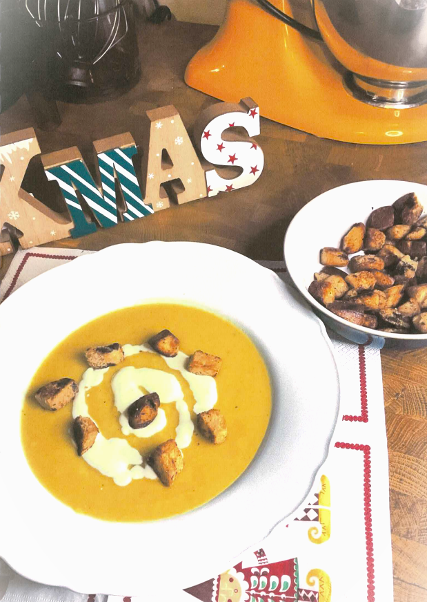 Day 2 of my Christmas Advent Recipe Extravaganza! And, unfortunately, we’re on to one of the worst pictures I probably took this entire time. I swear it tastes a lot better than it ended up looking. Soup was one of the first things I learned to make when I was learning Professional Cookery at College, and one of the first things I relearned when starting out in professional kitchens. A soup can be anything. It can be as complicated or as simple as you want it to be. To make it extra fancy I would often create a simple flavoured cream or oil to pour over the top and add a pop of flavour. The panettone croutons add that extra crunch and an extra dimension of flavour. Again, a perfect Starter or Lunch, and easy to prepare in advance– ready to go on the big day. Prepare your soup and leave, covered, in a fridge for up to 2 days before. Prepare your croutons, put in a bowl and wrap in cling-film in advance. Make your cream just before serving and you’re good to go.