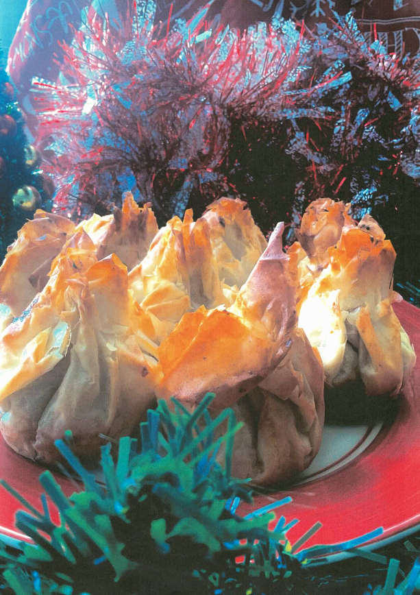 - Put 1tbsp of filling in the bottom of each filo parcel.