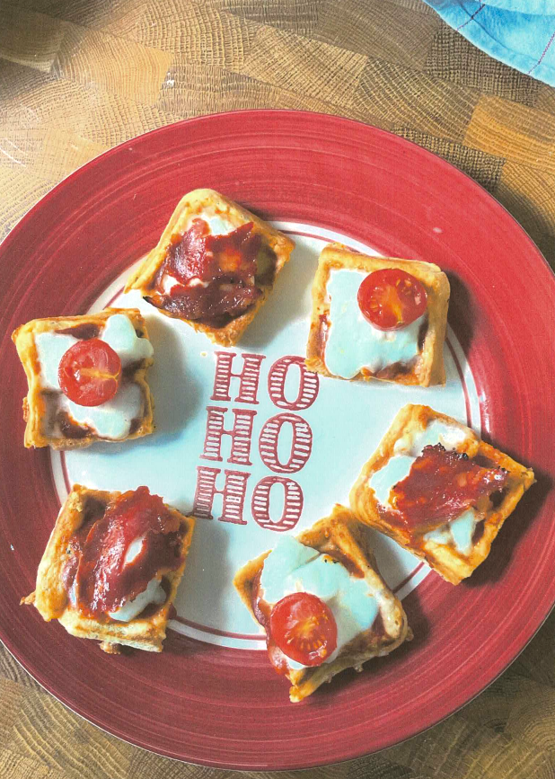 Day 18 and we’ve reached the Party Food section of the Advent Recipes. There’s not much I can say about the Pizza Waffles. They’re a cheesy waffle, cut into pieces with pizza toppings and they taste amazing. They’re also incredibly addictive so the real challenge is seeing if they actually make it to the buffet table or not.