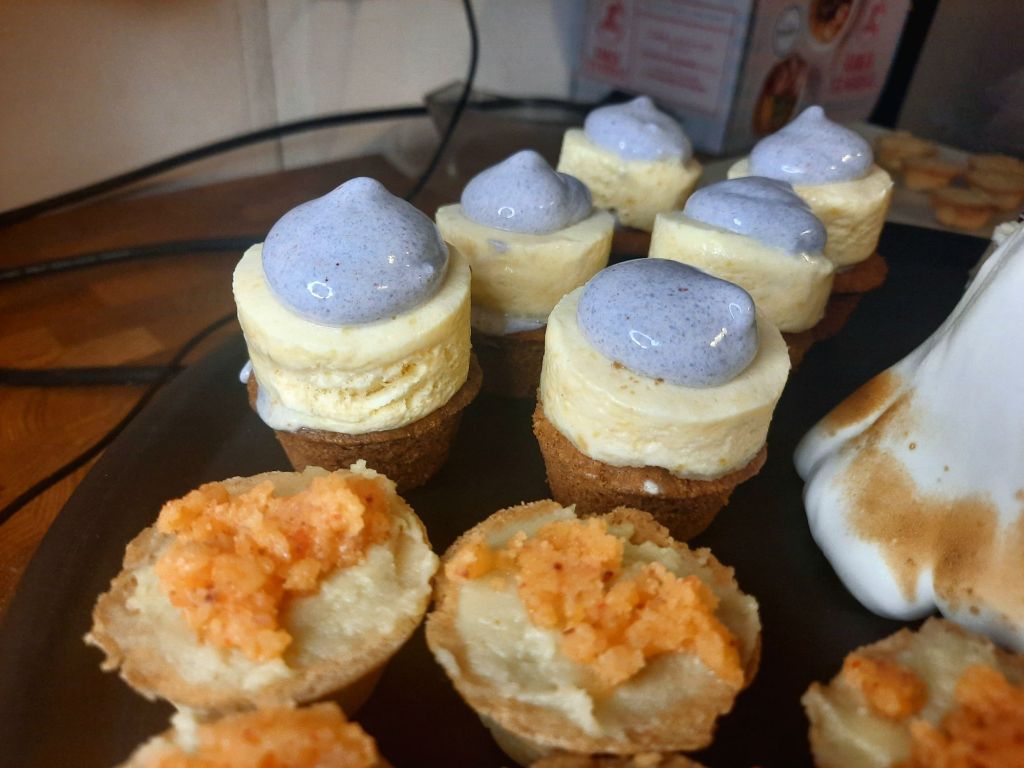 To create the top, crisp ‘burned sugar’ shell of my tarts I looked to another part of the show. When visiting a Fire Nation festival the Gaang pick up a packet of ‘Fire Flakes’. Obviously we don’t know what they actually were, other than they seemed spicy—maybe? I decided to make a Chilli-Caramel, blend it up and create a flavoured, spicy sugar layer I could then melt with a blowtorch to create my Crème Brûlée top. The colour of the ‘Fire Flakes’ is a light orange like fire and the flavour creates an additional layer of unique and interesting flavour on top of the lightly floral, sweet tea custard. The hardest part to make was the pastry bases as, because I used a basic sweet pastry, it was very crumbly and very fiddly to put into the mini-pie moulds without them breaking up. Thankfully they were worth the effort as they tasted delicious.